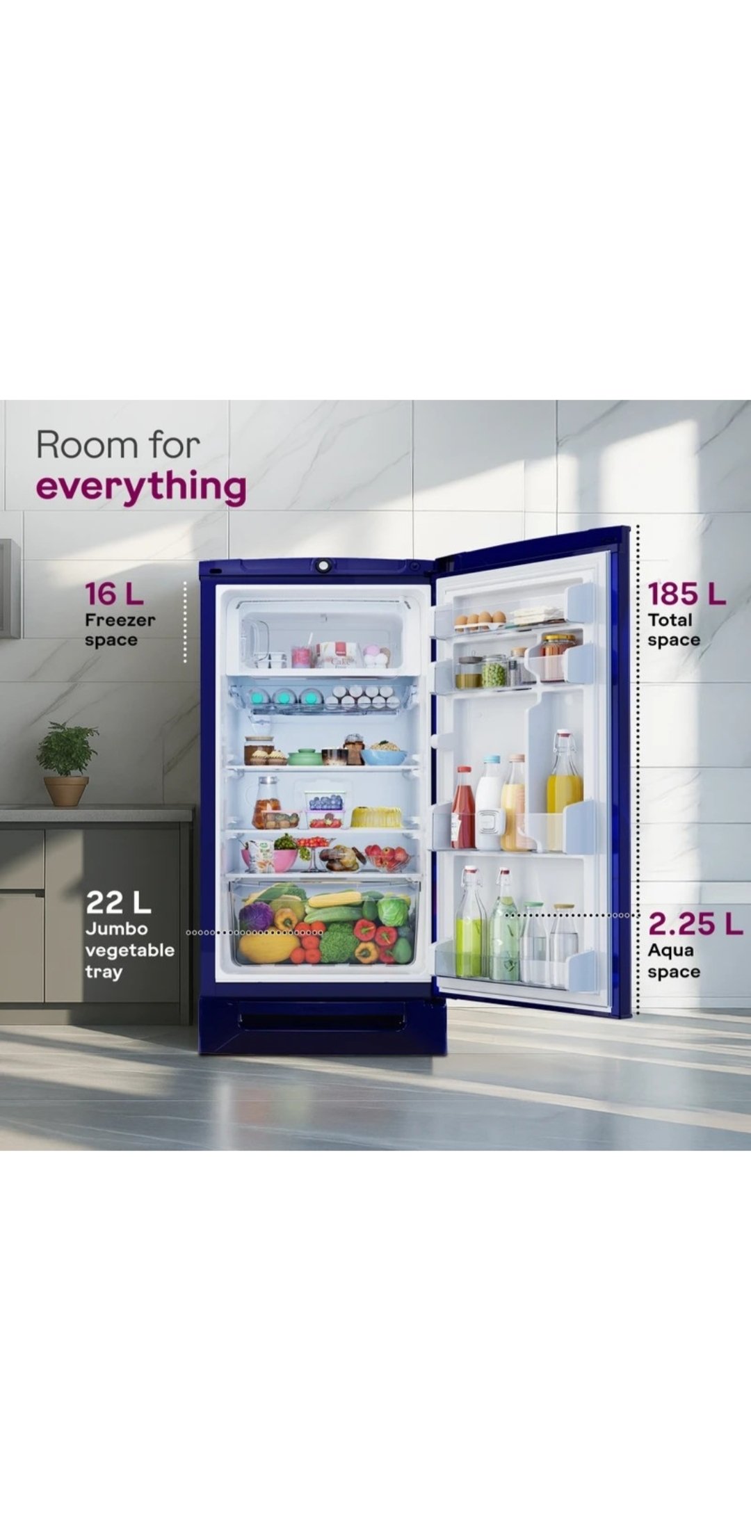 Finished in a premium blue color, the Godrej RD EdgePro 210E adds a modern and elegant touch to your kitchen. Backed by Godrej’s trusted quality and durability, this refrigerator offers long-lasting performance and dependable cooling.