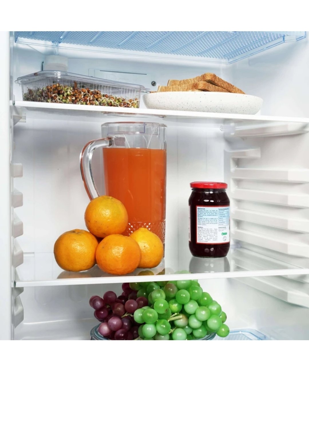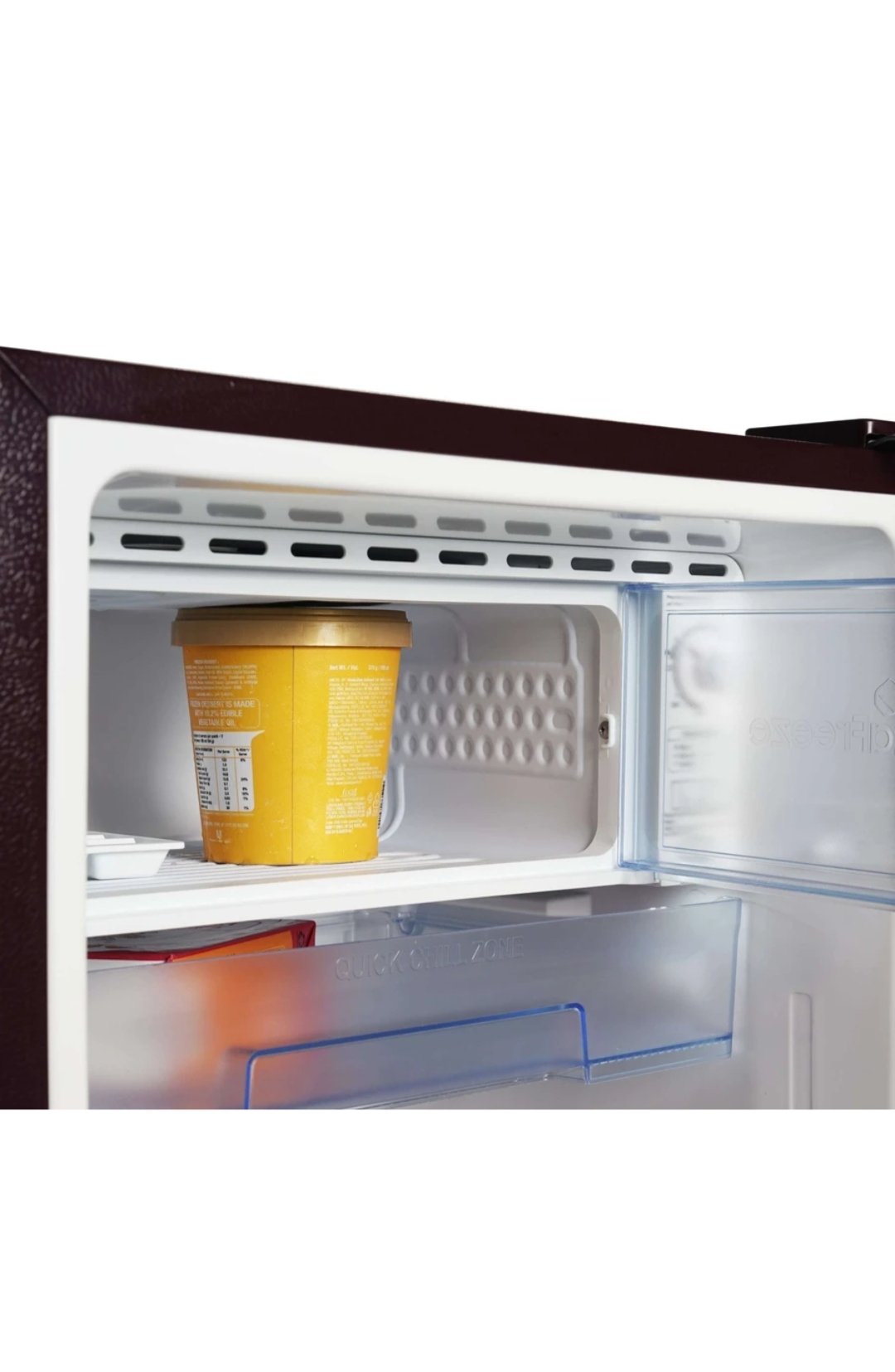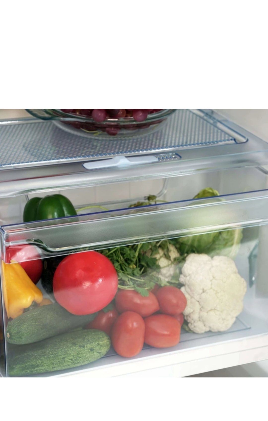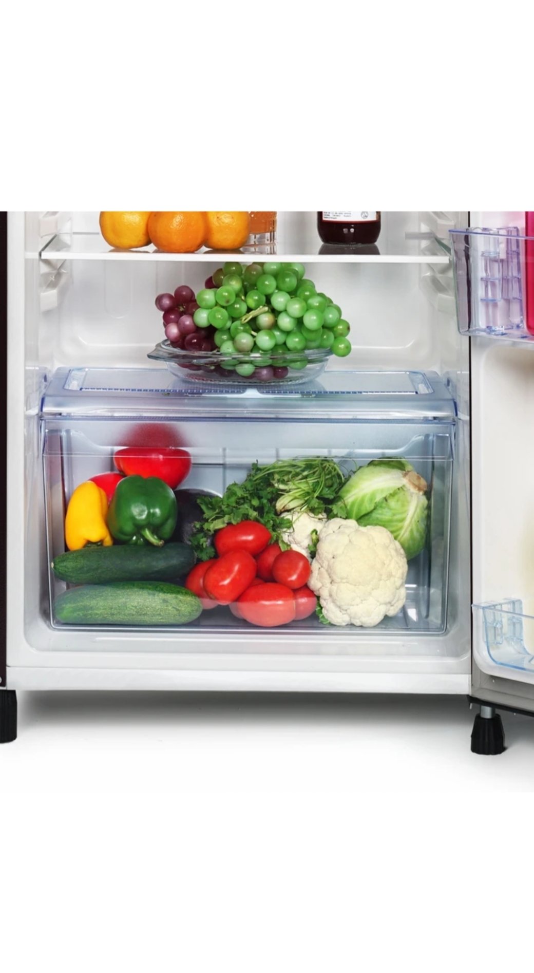 Powered by direct cool technology, this refrigerator ensures quick and uniform cooling to help preserve the freshness of fruits, vegetables, and beverages. The toughened glass shelves provide strong support for heavy utensils, while the large vegetable crisper helps retain moisture and freshness.