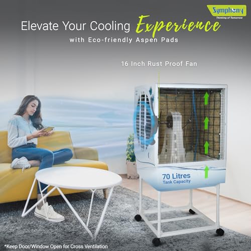 Tank Capacity: This cooler comes with a 70-liter water tank with a water level indicator, providing ample water for long-lasting cooling. |