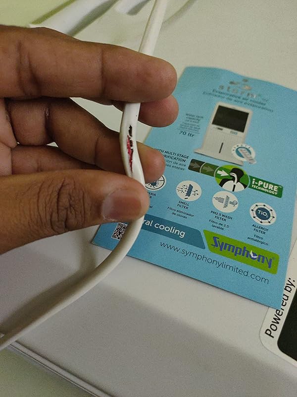 Damaged cable received and noise is too high. Getting cracked sound from Blower from inside the cooler within 2 weeks of purchase. Never Ever Buy this product. Water leakage from the blower to Sir outside flow. Pls check the ATTACHED VIDEO AS PROOF.