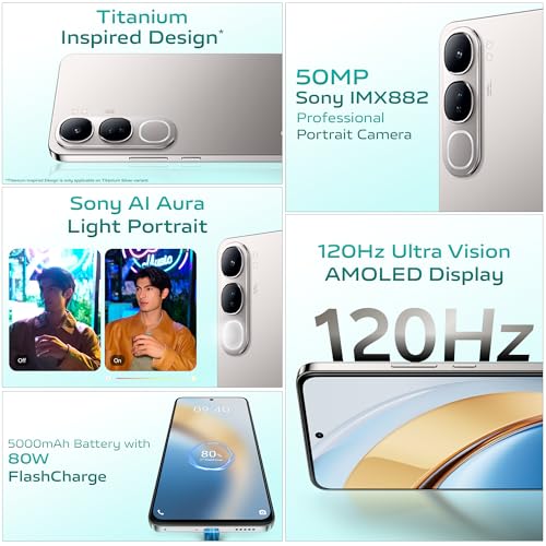About this item 50 MP Main Camera with Sony 882 AF with Single pixel size of 0.8 μm | f/1.79 1/1.953 ″ Sensor size | 32 MP Portrait Camera with Single pixel size of 0.7 μm | 1/3.1 ″sensor size | f/2.45 aperture with 2 MP Bokeh Camera with f/2.4 | AI Aura Light (Three levels of automatic brightness adjustment + Stepless automatic cool and warm color adjustment) 16.94 cm (6.67″ inch) FHD+ AMOLED display with a high screen-to-body ratio | 120Hz high refresh rate | Sunlight display of1800 nits Memory & SIM: 8GB RAM | 128GB internal memory; LPDDR4X | UFS 2.2 80W fast charging with 5000 mAh battery In-display fingerprint sensor, you can unlock the cinema in your pocket and start an immersive experience. Processor: Snapdragon 4 Gen 2 with a 4 nm advanced process with Low Power Consumption | 8-core CPU architecture design. The Qualcomm Kryo CPU provides a peak speed of up to 2.2 GHz. Scene Mode: Front: Photo, Portrait, Night, Video, Live Photo, Dual View | Rear: Photo, Portrait, Night, Video, 50 MP, Pano, Documents, Slow-mo, Time-lapse, Pro, Live Photo, Dual View, Supermoon